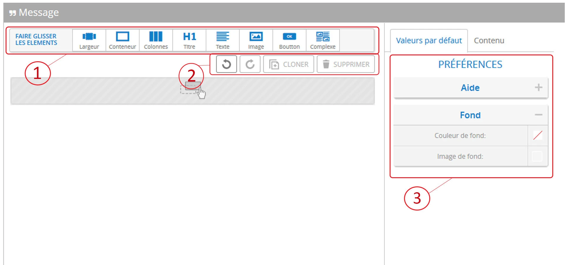 There are different tools: the width and the container, which will be used for the global architecture of the mail