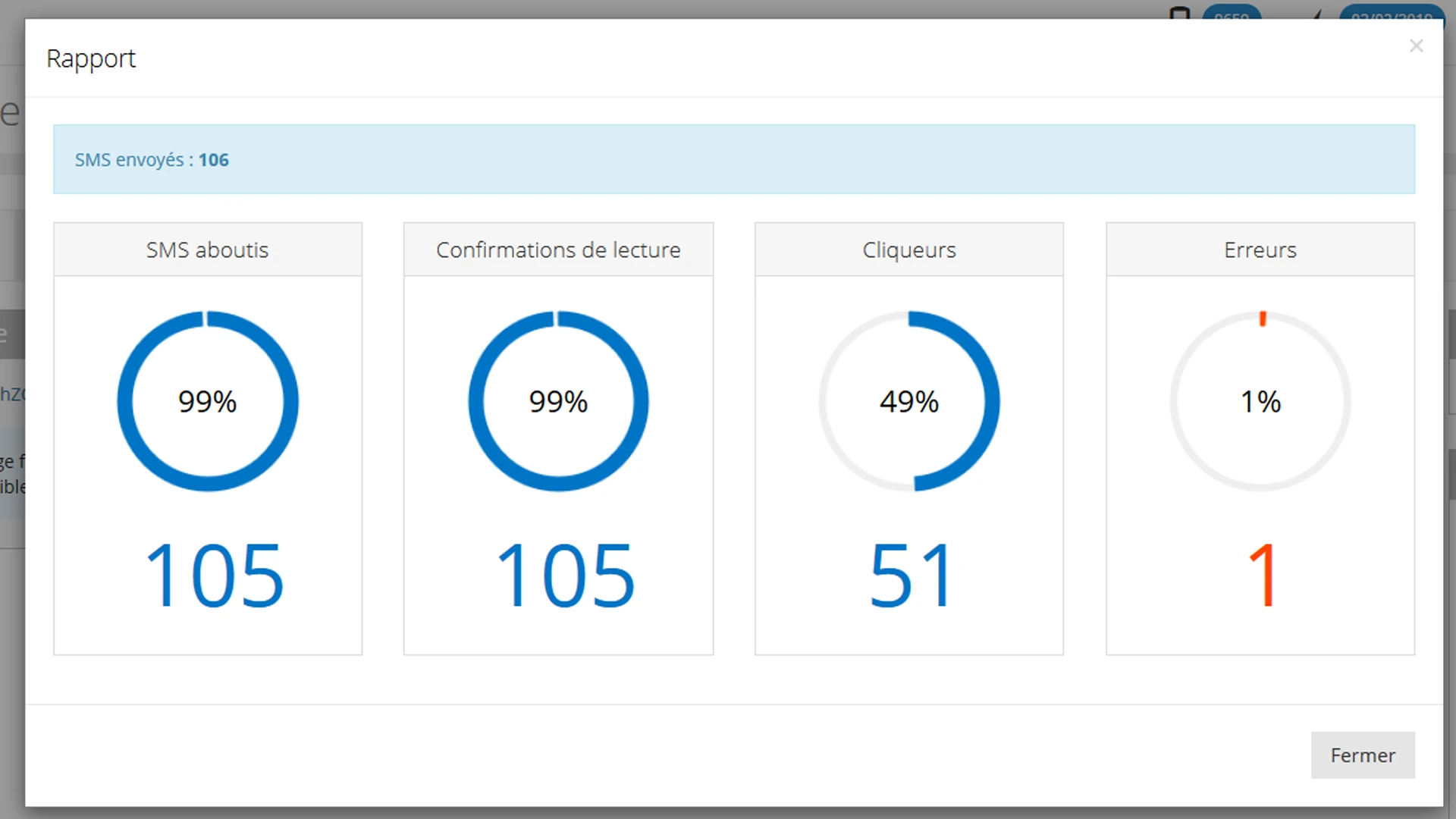 In your sent sms campaign, you will find a “statistics” tab with two entries: reports and enriched file.
